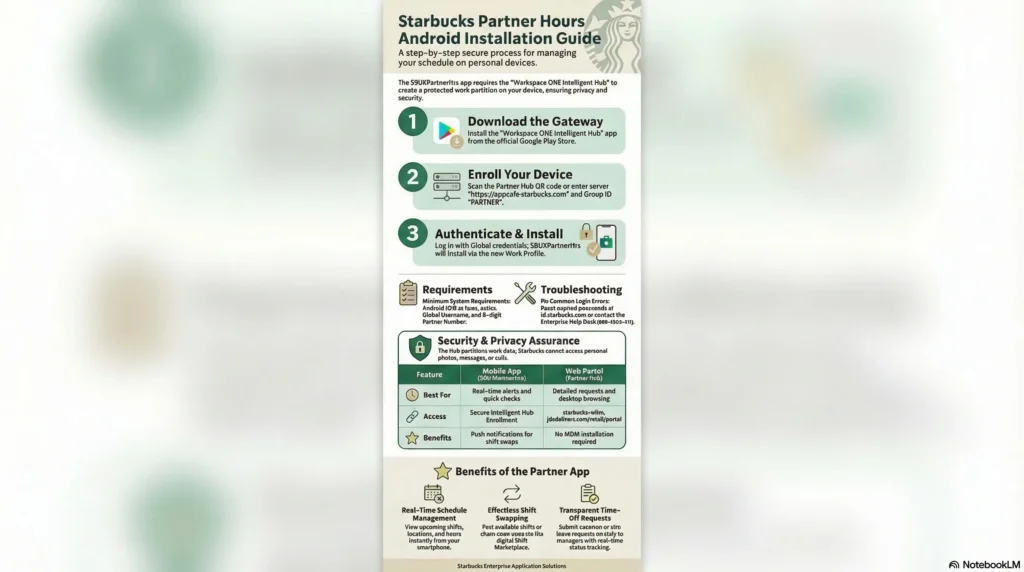 The most critical safety warning for any partner is to actively avoid downloading fake APK files. Never trust a public app store search or third-party website offering a direct download for “Starbucks Partner Hours” or “Sbux Schedule”. Malicious software designed to mimic the employee app exists specifically to harvest and steal your valuable login credentials. Always utilize the official Workspace ONE Intelligent Hub enrollment method or rely strictly on the official web portal.